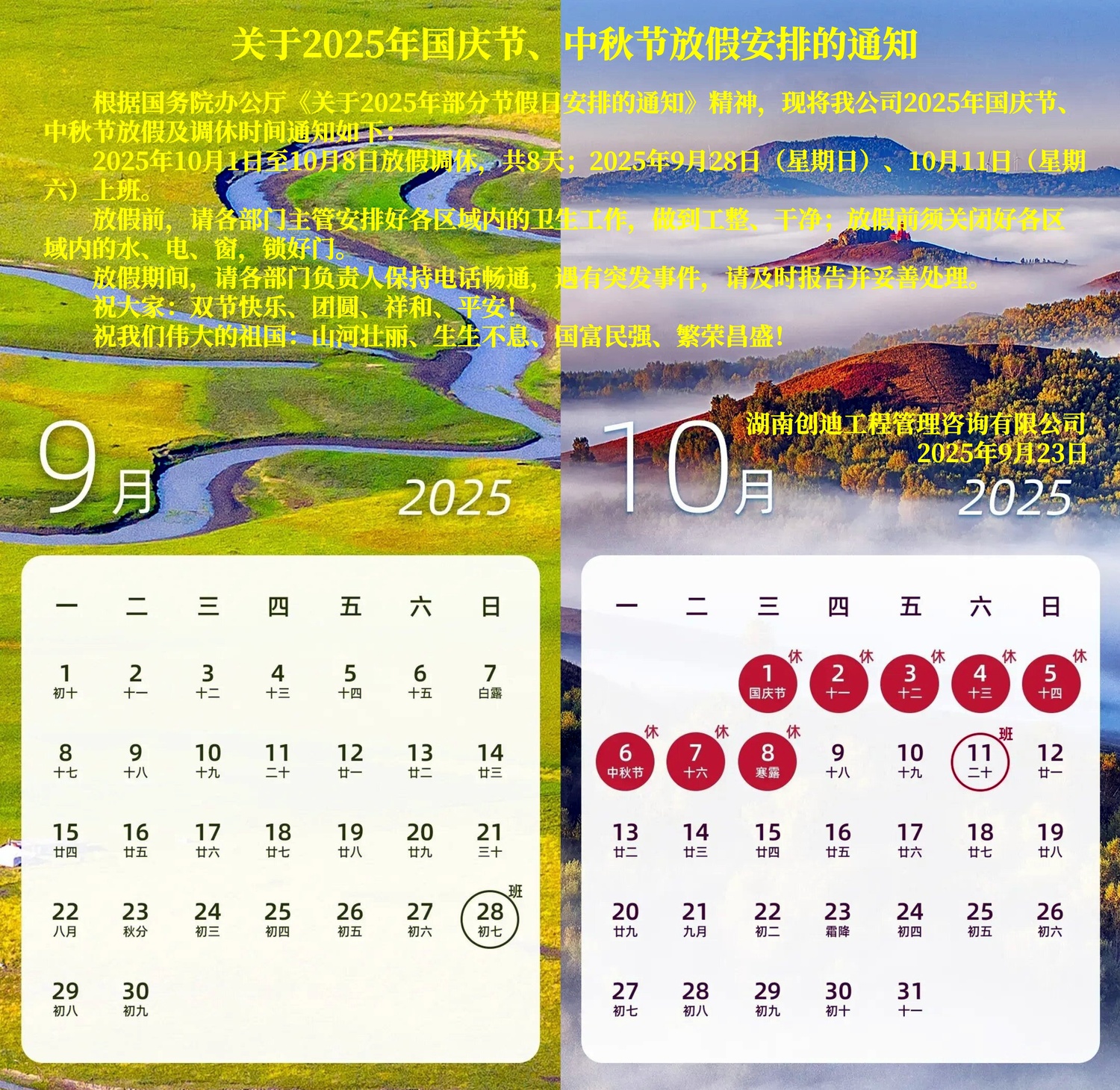 關(guān)于2025年國(guó)慶節(jié)、中秋節(jié)放假安排的通知
